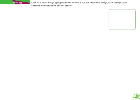 Painting Look for a set of manga eyes, paste them inside the box and imitate the design, draw the lights and shadows with chinese ink or color pencils. 51