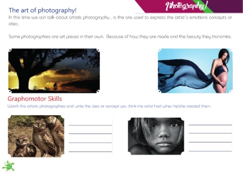 Watch this artistic photographies and write the idea or concept you think the artist had when he/she created them.